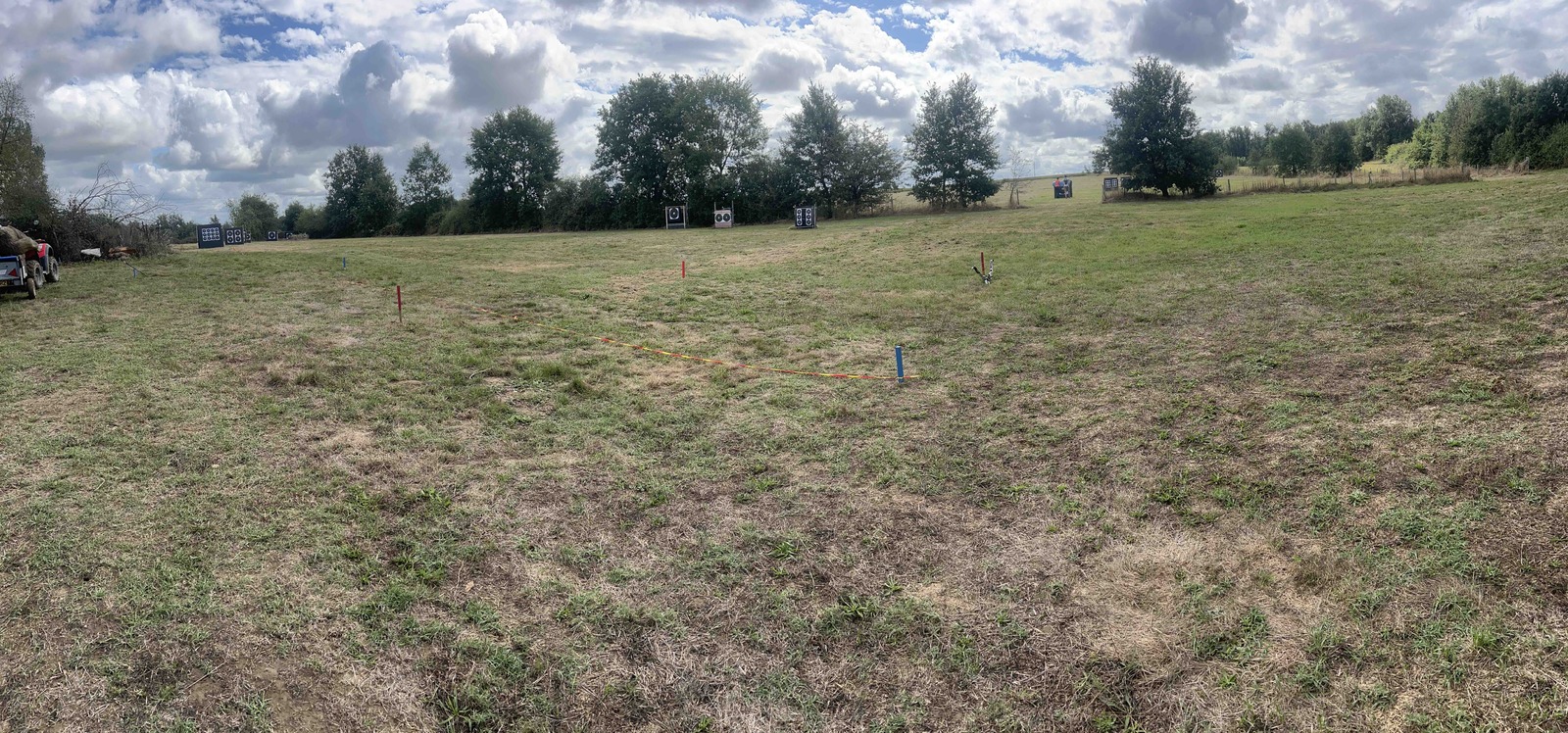Avant cela, du 31 août au 2 septembre, nous avions accueilli le stage de préparation des équipes de France de tir en campagne pour les championnats d'Europe qui se déroulent du 15 au 20 septembre en Pologne. Pour l'occasion, nous avions mis en place un parcours de 24 cibles (toutes à distances inconnues) dans les bois et un plateau de 12 cibles à proximité du greffe, permettant de tirer jusqu'à 60 m (cf photo).